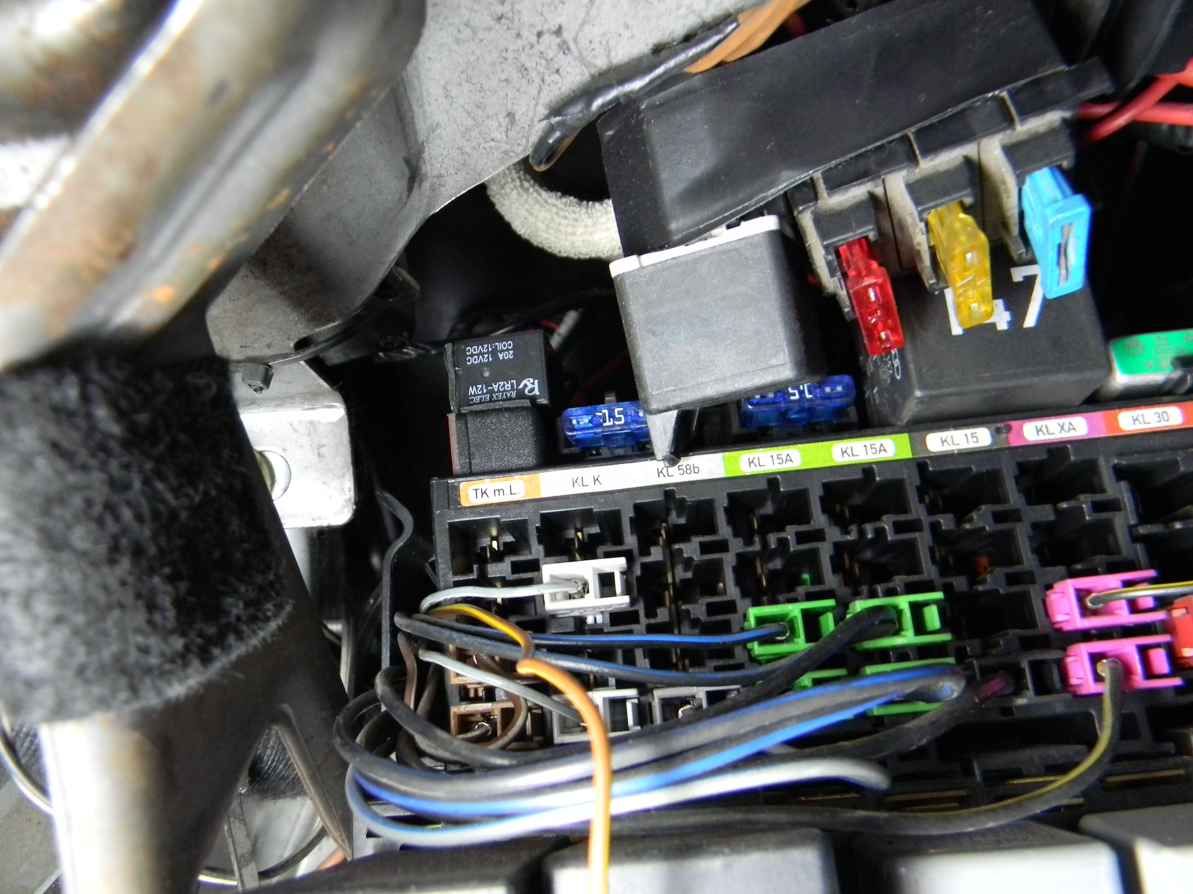 Ищем «плюс от зажигания» на монтажном блоке для питания датчика торможения Spider ESS.