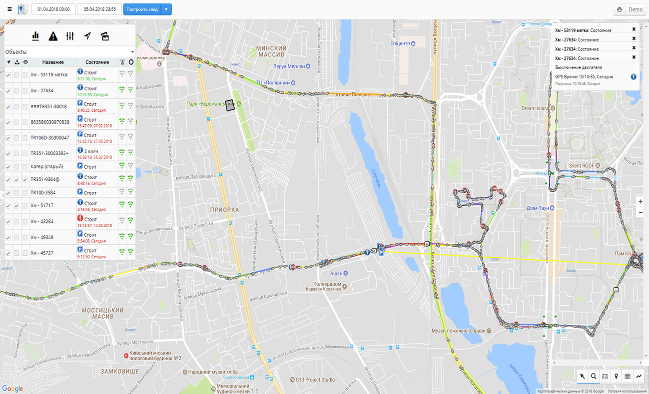 • настраиваемая отчетность по событиям (тревога, включение/разряд трекера, операции с SIM-картой, вкл/откл. двигателя и т.п.)